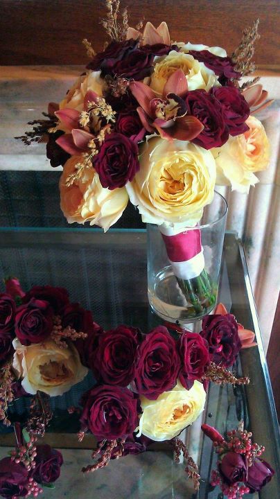 The full lineup of bouquets and boutonnieres. I loved the colors!